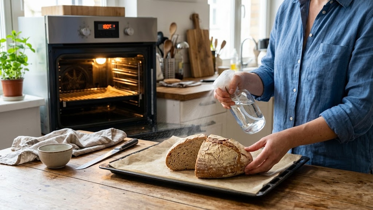 Gerçek çözüm, ekmeğe kaybettiği nemi kontrollü bir şekilde geri vermektir. Bunun için ihtiyacınız olan tek şey bir fıs fıs şişesi ve su. Bayatlamış ekmeğin dış kabuğunu elinizle veya bir fıs fıs yardımıyla hafifçe ıslatın. Burada dikkat etmeniz gereken nokta ekmeği suya boğmak değil, sadece dış yüzeyini nemlendirmektir.