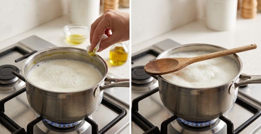 Burada dikkat etmeniz gereken tek nokta, kaşığın mutlaka tahta olmasıdır; çünkü metal kaşıklar ısıyı hızla ilettiği için aynı etkiyi yaratmaz. Tahta kaşık, sütün kendi içine çökmesini sağlayarak ocağınızın tertemiz kalmasını sağlar.