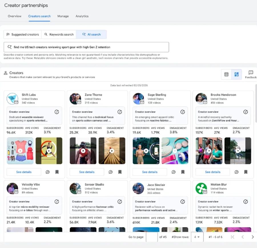 Yeni sistem, Google’ın Gemini yapay zekâ teknolojisi temelinde çalışıyor. Platform, video içeriklerini ve kanal verilerini analiz ederek markalara en uygun içerik üreticilerini listeleme imkânı sunuyor. Bu sayede özellikle küçük ölçekli kanalların kaliteli içeriklerle markalar tarafından fark edilmesi mümkün hâle geliyor.
